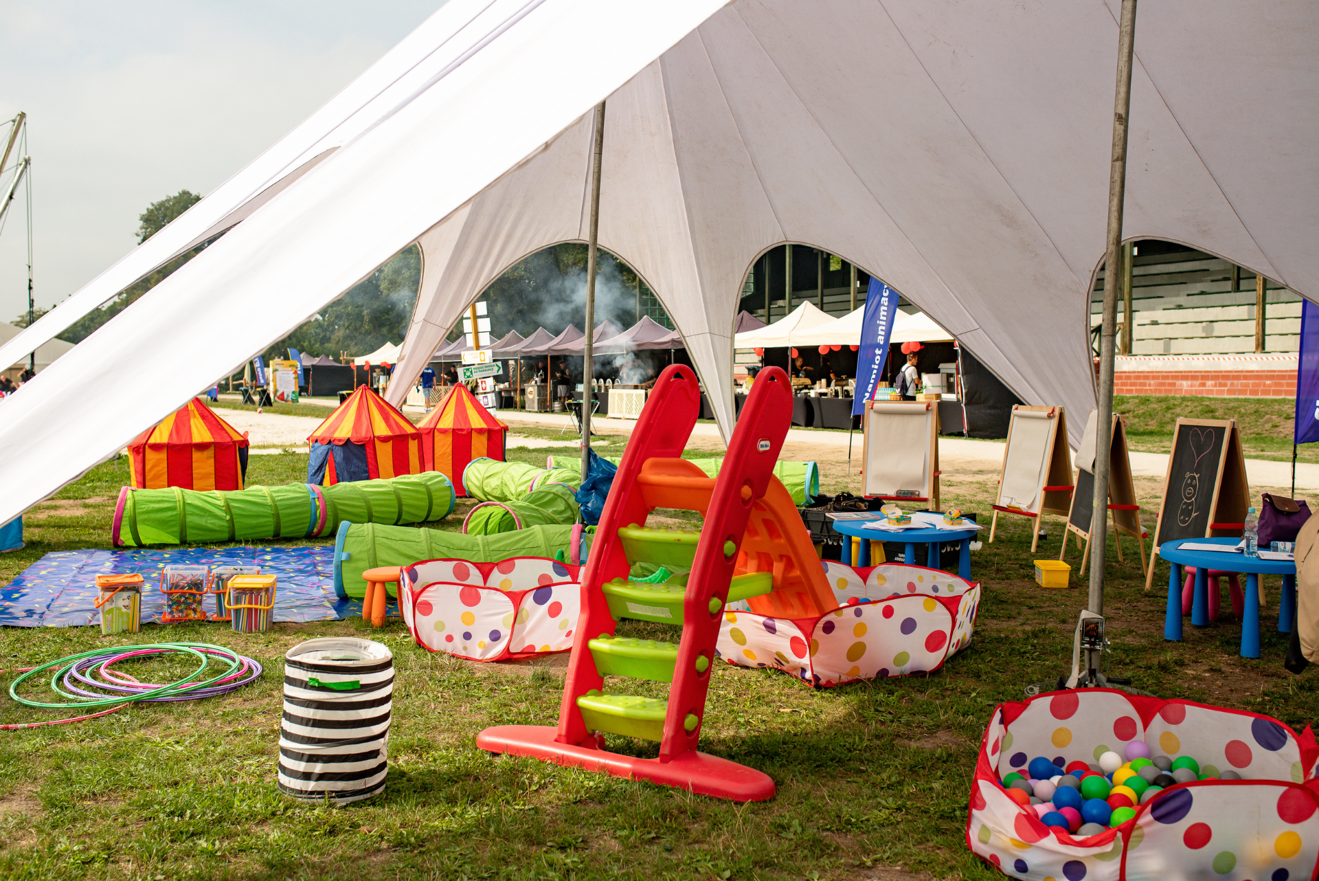 Zadbaliśmy o atrakcje zarówno dla dzieci, jak i dorosłych. Najmłodsi mieli do dyspozycji: trampoliny, gokarty na pedały, mini golf, dmuchańce, bańki mydlane oraz gry i zabawy ruchowe.