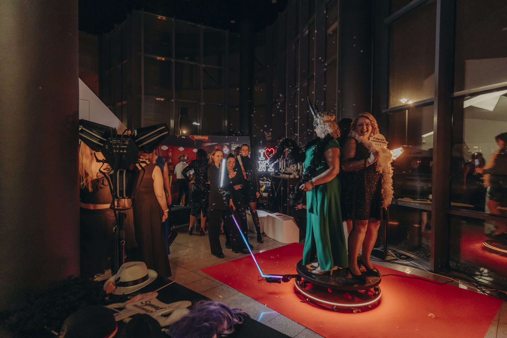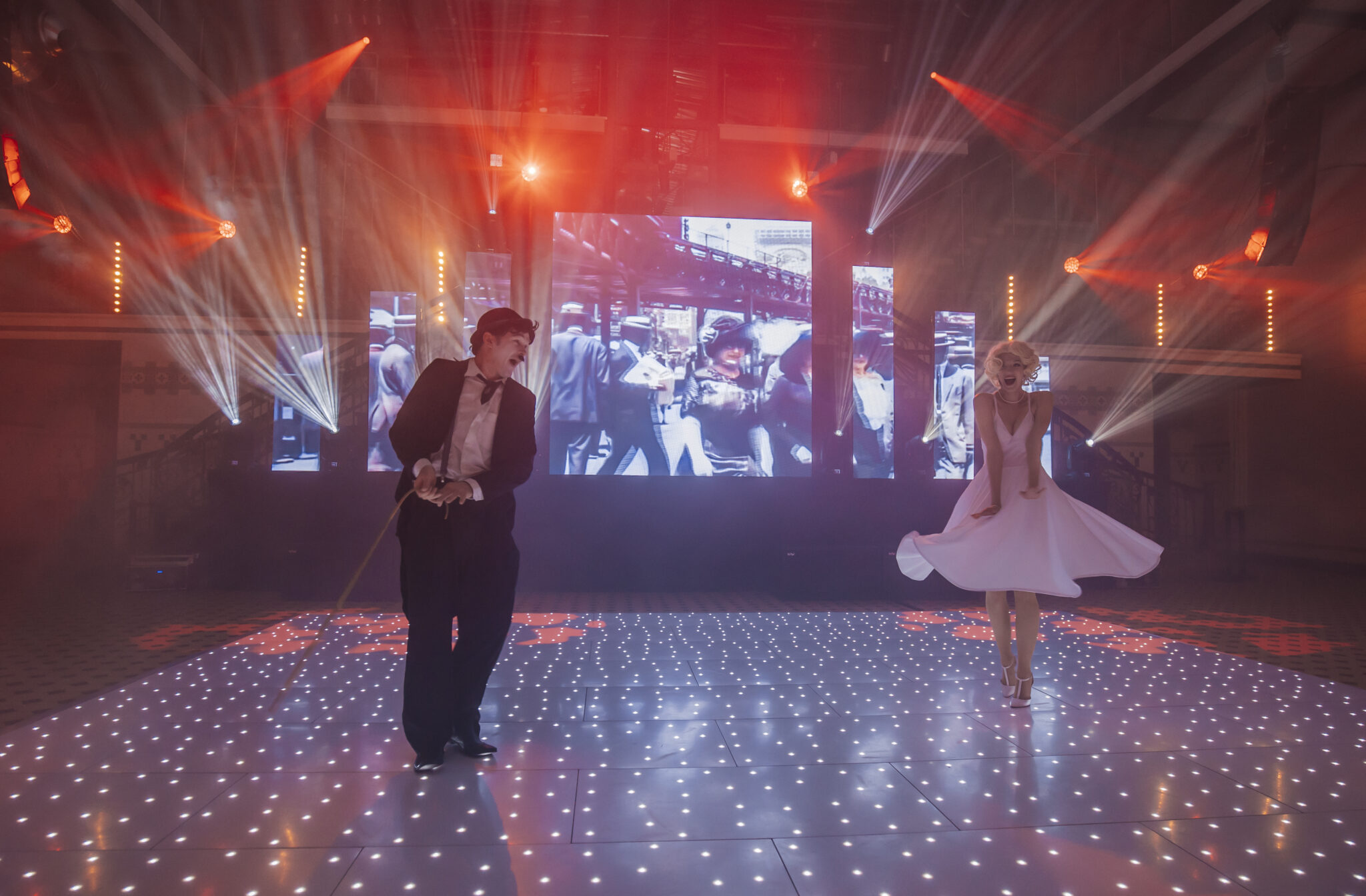 Przemierzając przestrzeń wydarzenia, ekipa naszej agencji eventowej FSWO zapraszała gości do podświetlanych coctail barów. Tam barmani przygotowywali drinki wprost z Manhattanu! Neonowe światła tworzyły klimat jak na Times Square. Gdy neony rozbłysnęły pełnią barw, na scenie rozpoczęło się energetyzujące taneczne show, w którym swój udział mieli także Marilyn i Charlie. Później saksofonista, perkusista i DJ zadbali o wyjątkową oprawę muzyczną wydarzenia, mieszając współczesne brzmienia z klasycznymi melodiami.