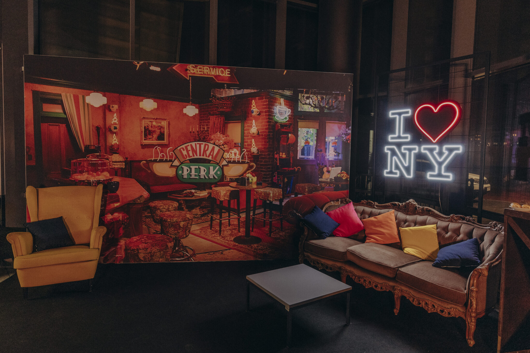 Sprawiliśmy, że goście eventu mogli poczuć namiastkę klimatycznego New York City i spełnić chociaż część amerykańskiego snu. Przed wejściem do budynku stały słynne prawdziwe, żółte american cabs. Przebieg wydarzeń obserwowali zza przeciwsłonecznych okularów nowojorscy policemani. Po wejściu uczestnicy mogli poczuć się jak najpopularniejsza szóstka przyjaciół z Nowego Jorku… Następnie usiąść na wygodnej kanapie z szyldem Central Perk w tle, przypomnieć sobie kultowe sceny z serialu „Friends” i uwiecznić tę chwilę pamiątkowym zdjęciem. W innym miejscu można było poczuć się jak Marilyn Monroe w kultowej białej sukience i zrobić sobie gwiazdorską sesję zdjęciową dzięki fotobudce 360°. Na evencie nie zabrakło oczywiście samej Marylin w towarzystwie innej ponadczasowej gwiazdy – Charliego Chaplina. Całość dopełniały klimatyczne fotografie, dzięki którym można było odkrywać Nowy Jork kiedyś i dziś.